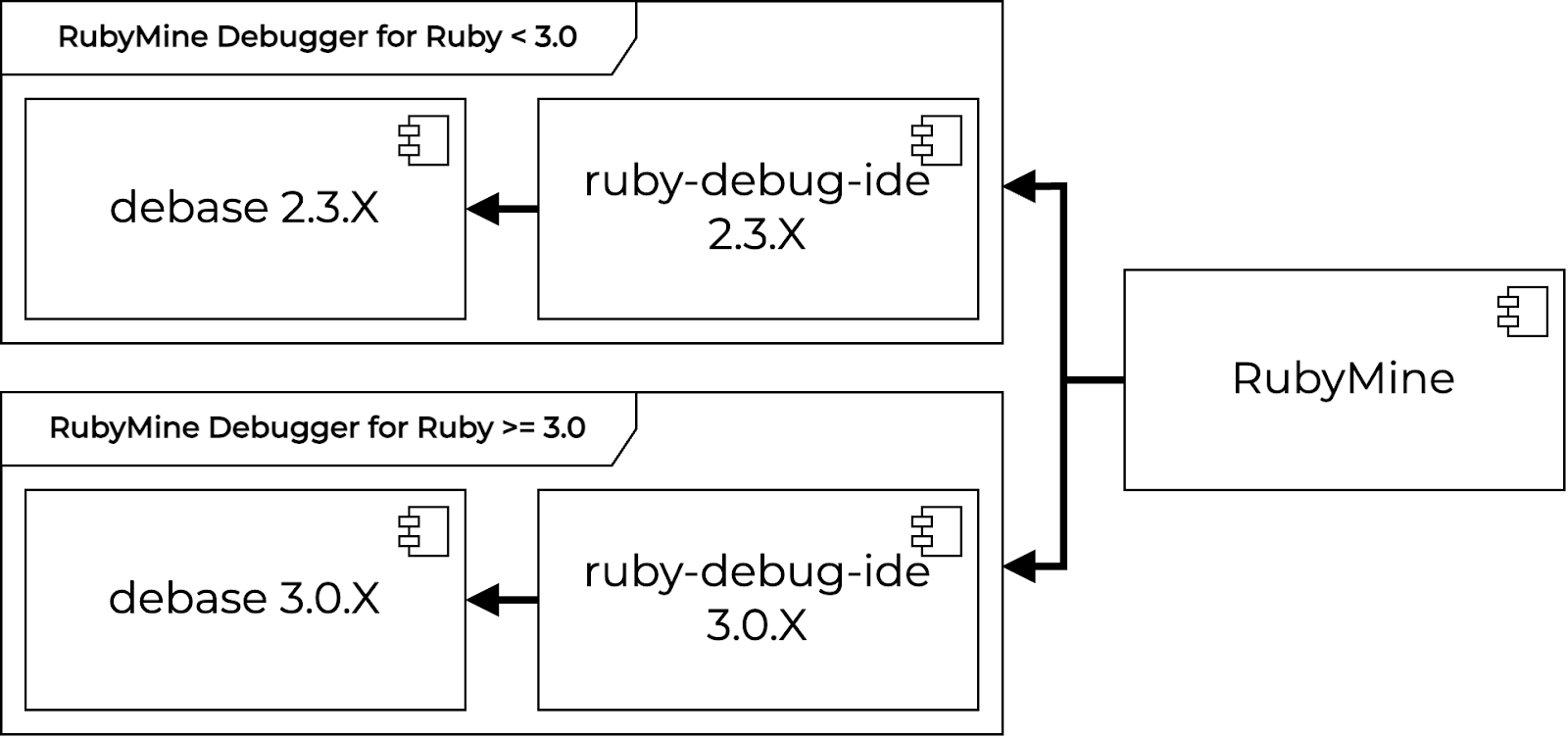 RubyMine debugger • ruby-debug-ide – 2.3.24 • debase – 2.3.15 | RubyMine debugger • ruby-debug-ide – 3.0.2 • debase – 3.0.2 |