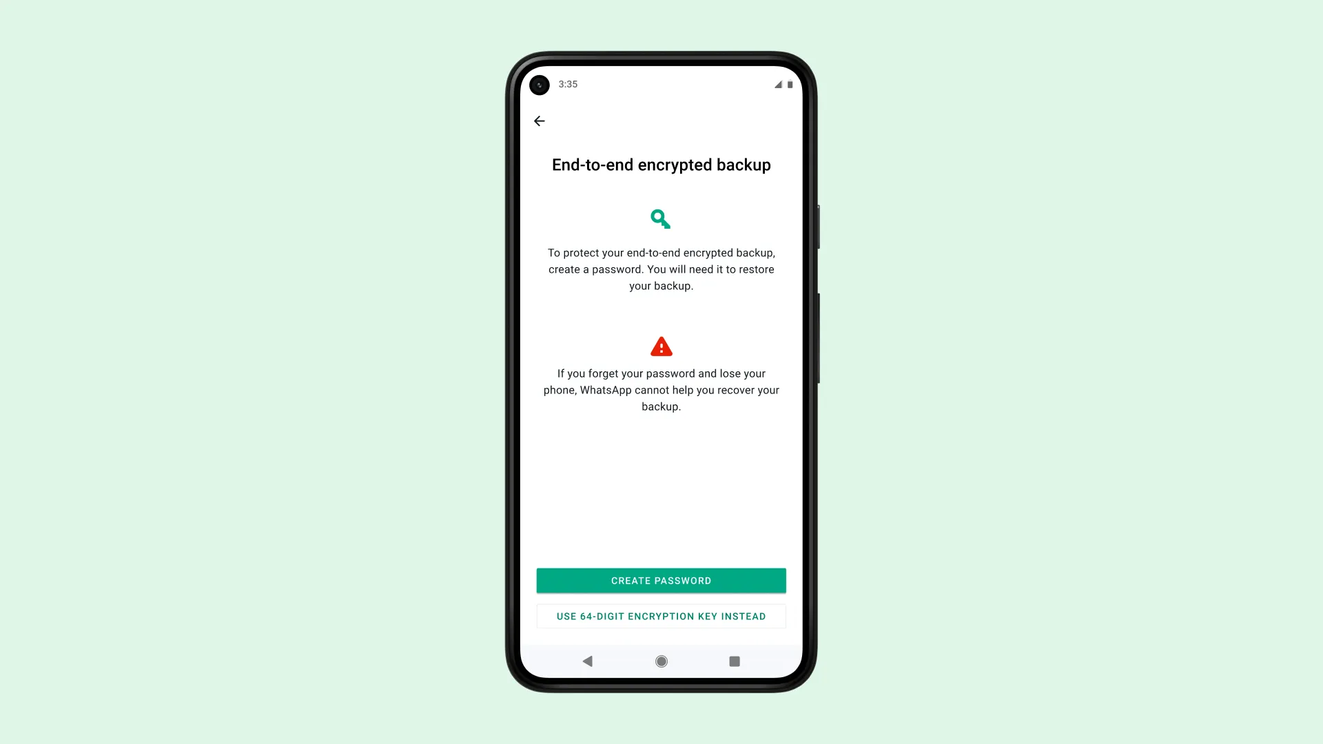 You can now secure your end-to-end encrypted backup with either a password of your choice or a 64-digit encryption key that only you know. Neither WhatsApp nor your backup service provider will be able to read your backups or access the key required to unlock it.