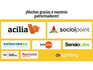 OpenSky utiliza Symfony como base para sus aplicaciones, habiendo migrado desde Magento a través de varias versiones de Symfony. La infraestructura actual incluye Symfony 2.8, PHP 7.0.12, y utiliza herramientas como Redis, Varnish y Jenkins para su flujo de trabajo, que incorpora pruebas unitarias y de integración. Se manejan diferentes niveles de autenticación y seguridad, así como la capacidad de realizar cambios en la configuración sin necesidad de un despliegue completo, permitiendo mantener una alta disponibilidad y rendimiento.