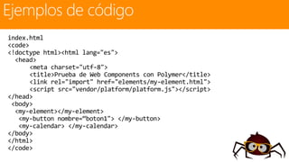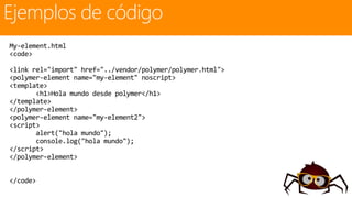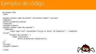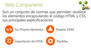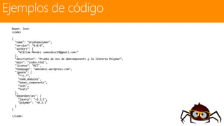 • Workflow [Yeoman]](https://image.slidesharecdn.com/usodehtml5webcomponents-140719093051-phpapp02/75/Uso-de-html5-webcomponents-11-2048.jpg)