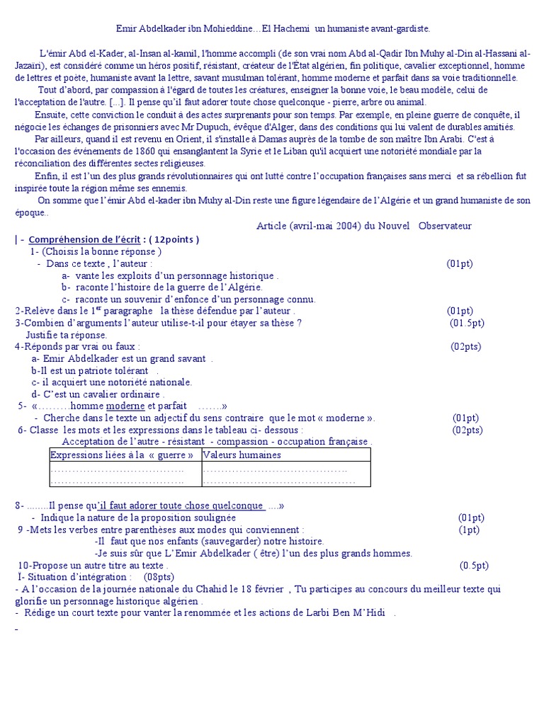-Je suis sûr que L’Emir Abdelkader ( être) l’un des plus grands hommes.