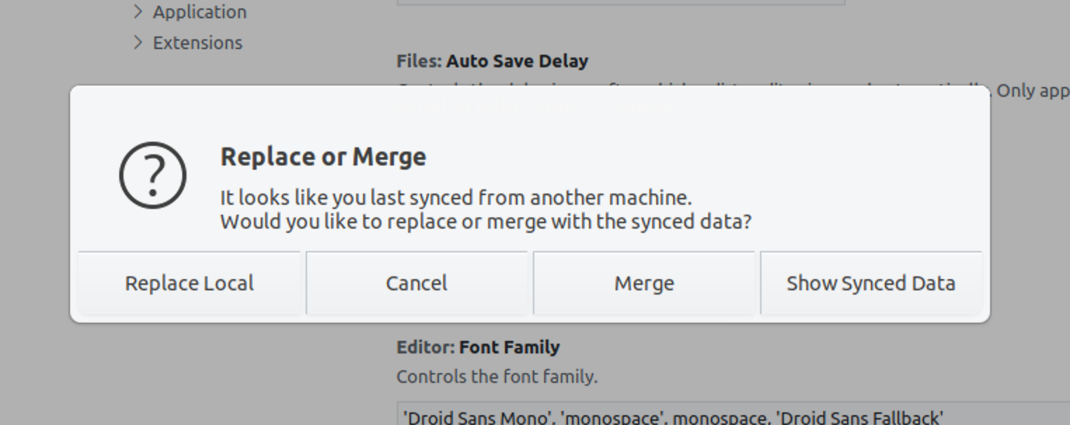 When turning on sync on secondary machine, it asks to either replace or merge the synced data. There is also an option to "Show Synced Data" which leads to a confusing flow:
