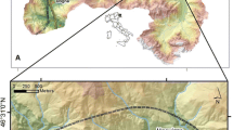 Fluvial sediment transport, in contrast, also referred to as water floods (Costa 1988) or sediment-laden flow (Wan and Wang 1994), is characterised by a lower sediment concentration than debris floods (Scheidl and Rickenmann 2010). A sediment concentration of 40% by weight (20% by volume) as a threshold between fluvial sediment transport and hyperconcentrated flows is suggested (Costa 1988). Within fluvial sediment transport processes, sediment and water are moving with different velocities as two distinct and separate phases (Costa 1988). During one individual event, the respective processes in the torrent often change due to the temporal and spatial variability of sediment concentration. As a result, the dominant process in the central part of the deposition zone should be used to define the entire event characteristics (Hungr et al. 2001). However, sediment concentration (Costa 1984, 1988) and peak discharge (Hungr et al. 2001) cannot be determined for historical events, nor are such characteristics widely used in recent event documentations. Due to this lack of data, an alternative procedure to determine the general predisposition of a catchment to a certain torrent process was applied. This approach is based on a relation between the Melton number M E and the average fan slope S f (Bardou 2002), see Fig. 2. The Melton number M E resulted from a combination of maximum elevation difference in a catchment divided by the square root of the catchment area according to Melton’s ruggedness number (Melton 1965) and represents a relative and dimensionless parameter for the basin relief. Two threshold lines were proposed to distinguish between different torrent processes (Fig. 2). By threshold line A fluvial sediment transport processes are separated from mixed processes, and by threshold line B mixed processes are separated from debris flows (Bardou 2002; Scheidl and Rickenmann 2010).Footnote 2 A Melton number below 0.3 is typical for watersheds dominated by fluvial sediment transport (Wilford et al. 2004). It is shown in Fig. 2 that two test sites (Vorderbergerbach and Stubenbach, see Sect. 2.2) are situated within or close to the area of fluvial sediment transport processes. Simultaneously, the Melton number of these two test sites is below or close to 0.3, which is a further indication for a general predisposition of these catchments towards fluvial sediment transport processes. As indicated in Fig. 2, the Schnannerbach torrent is situated in the area of mixed transport processes.