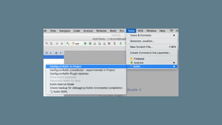 O documento discute as vantagens do Kotlin para desenvolvimento Android, destacando sua concisão, interoperabilidade com Java, e recursos modernos como segurança contra nulidade e funções de extensão. Ele inclui exemplos práticos de sintaxe, tipos de dados, manipulação de coleções e uso de corrotinas. Além disso, aborda a compatibilidade com o Android Studio, facilitando a transição de Java para Kotlin em projetos existentes.