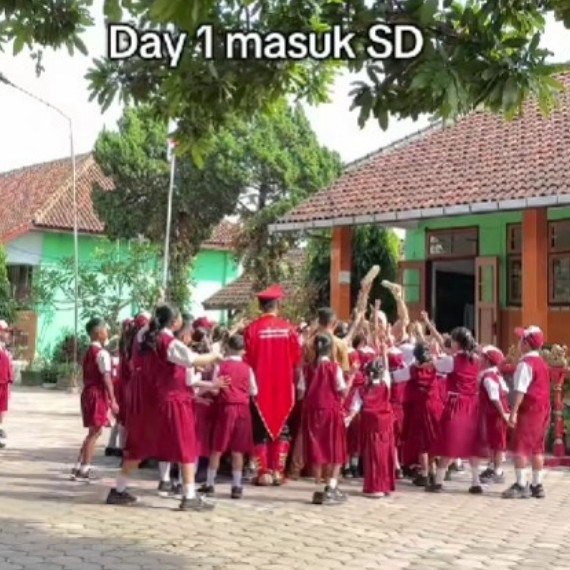 Momen kocak bapak-bapak jaga anaknya di TK, penampilannya bikin nyengir