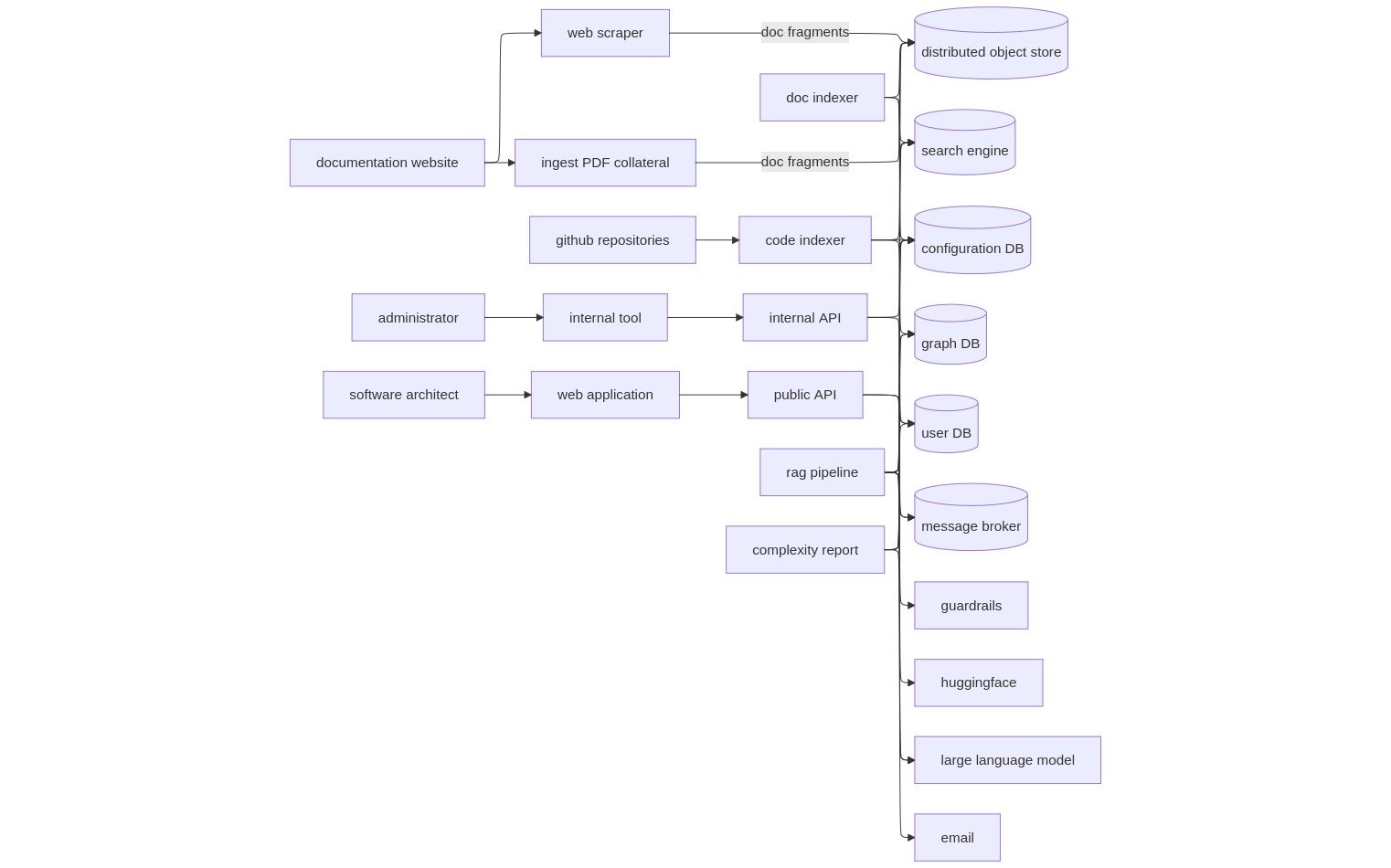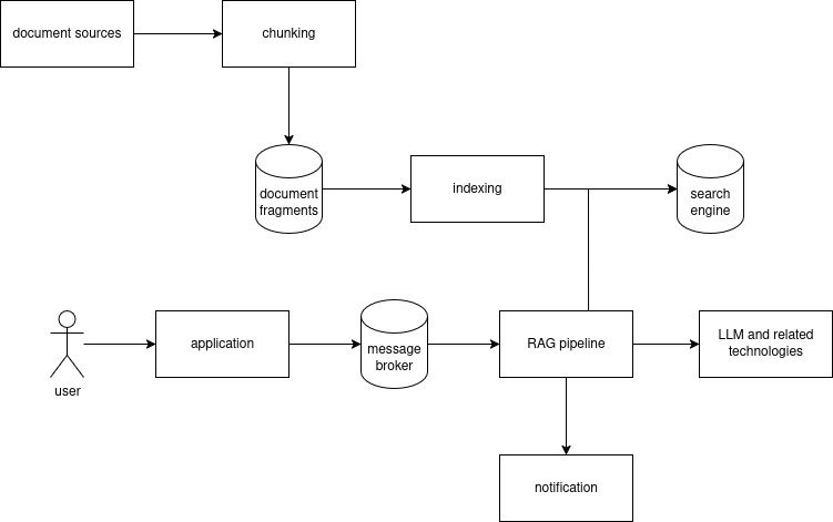 After that, you can ask about the current architecture or how to enhance it. You can ask for just a high-level pitch or a detailed plan. You can also ask about reducing accidental complexity in general. Figure 1 below is a component diagram for the entire RAG pipeline for this project but this article will focus on the lessons learned from the documentation chunking, indexing, and searching parts.