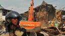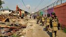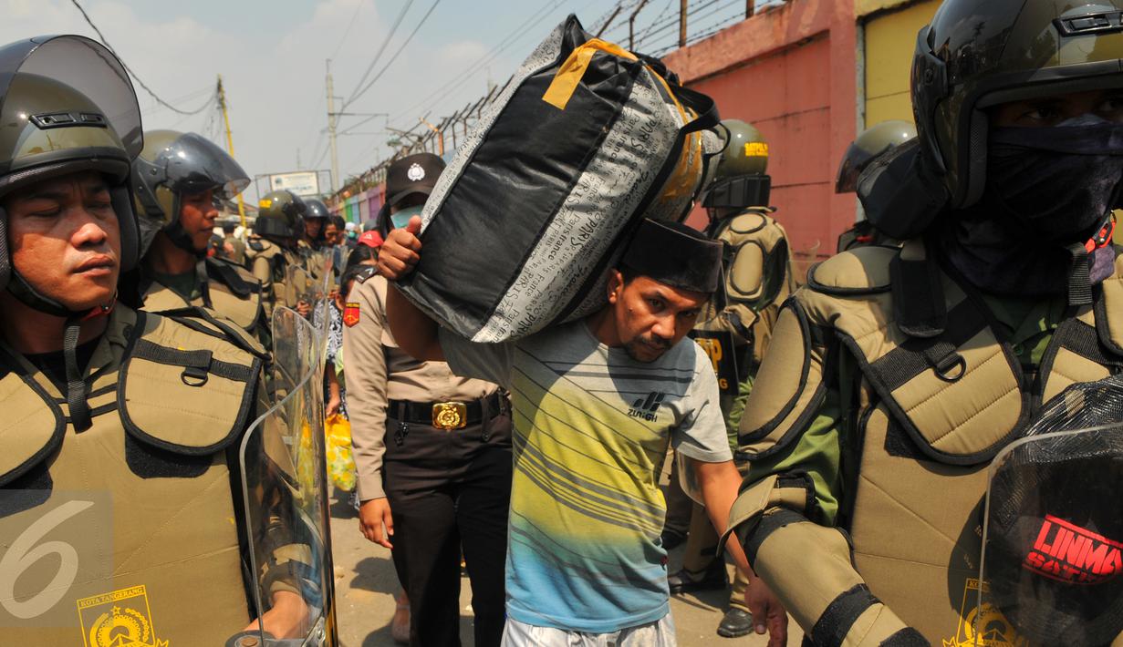 Petugas Satpol PP dan anggota Kepolisian saat menjaga evakuasi warga Tanah Tinggi, Tangerang, Selasa, (14/3). Pemprov Kota Tangerang membongkar rumah warga Tanah Tinggi karena tak memiliki surat ijin tinggal yang resmi. (Liputan6.com/Faisal R Syam)