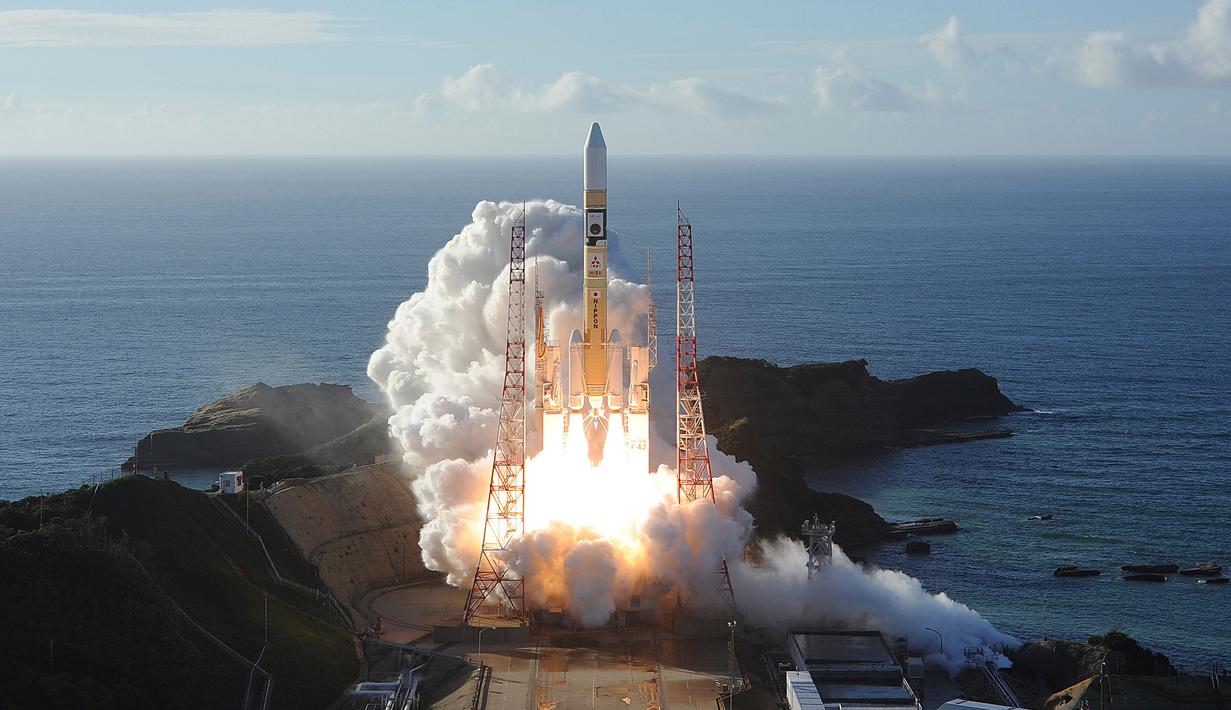 Roket H-IIA lepas landas dari landasan peluncuran di Tanegashima Space Center di Tanegashima, Jepang, Senin (20/7/2020). Roket yang membawa kendaraan luar angkasa buatan Uni Emirat Arab (UAE) diluncurkan menuju Mars dalam misi pertama antarplanet bagi negara Arab (Hiroki Yamauchi/Kyodo News via AP)