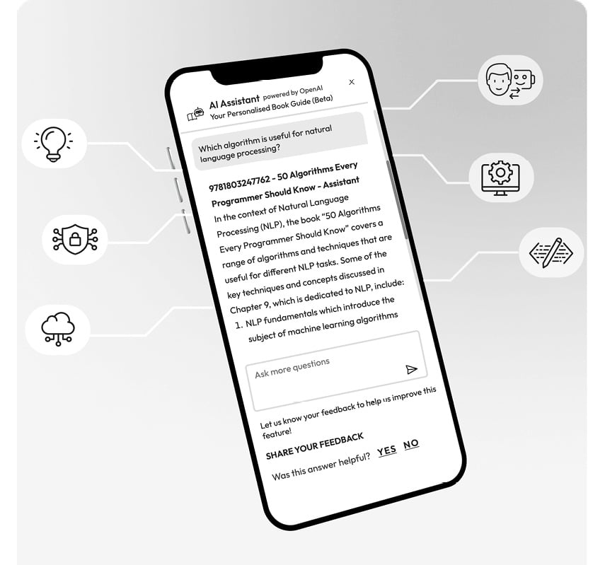 Our interactive AI assistant has been trained on the content of this book, so it can help you out if you encounter any issues. It comes with the following features: