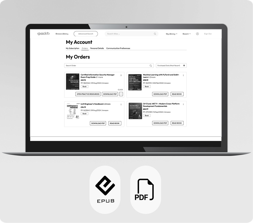 When you buy any Print edition of our Books, you can redeem (for free) the eBook edition of the Print Book you’ve purchased. This gives you instant access to your book when you make an order via PDF, EPUB or our online Reader experience.