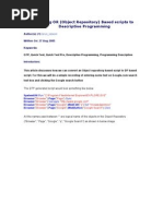 Browser(g_MainBrowser).Page(g_MainPage).Link(g_Lnk_Login).Click 2. Dynamic: - We add a collection of properties and values to a Description object, and then enter the Description object name in the statement. Set oBrowser = Description.create oBrowser (micclass).value=Browser oBrowser (name).value= Google Set oPage = Description.create oPage (micclass).value=Page oPage (name).value= Google Set oLink = Description.create oLink (name).value= Login oLink (index).value= 1 Browser(oBrowser).Page(oPage).Link(oLink).click Using the Static type to enter programmatic descriptions directly into your statements may be easier for basic object description needs. However, in most cases, using the Dynamic type provides more power, efficiency, and flexibility. Handling Runtime added objects / Dynamic Objects / Same Description Objects Dynamic objects : Property values are getting changed regularly.