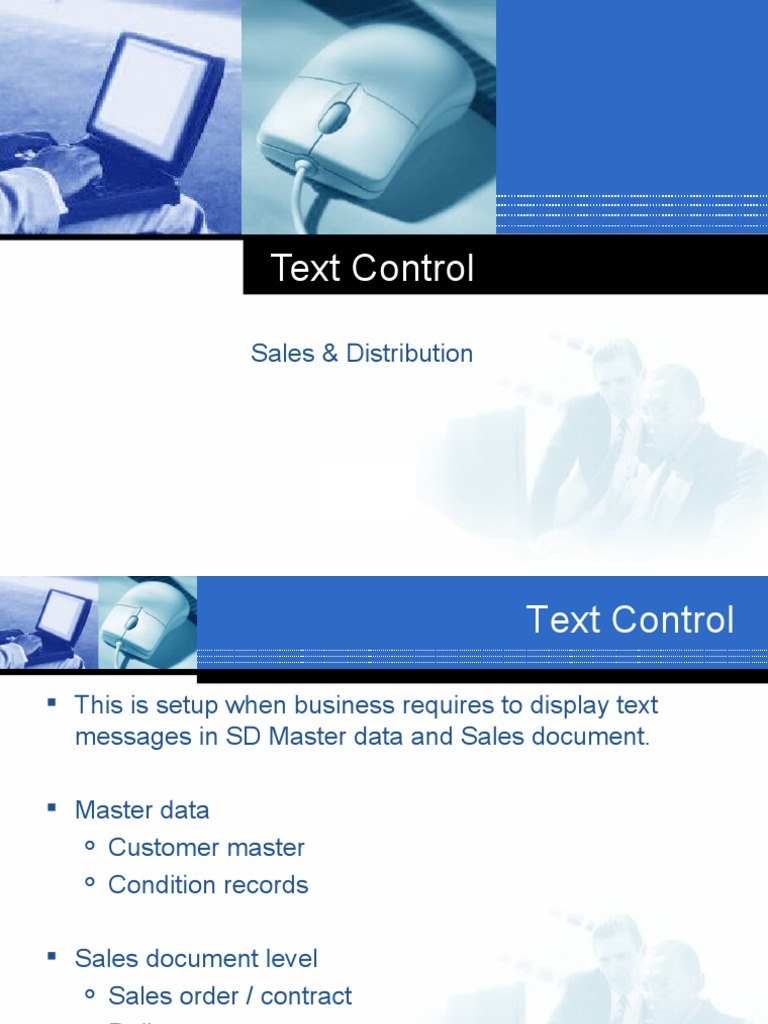Examples of different types of text in sales order