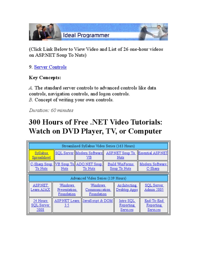 Syllabus SQL Server Modern Software ASP.NET Soup To Essential ASP.NET