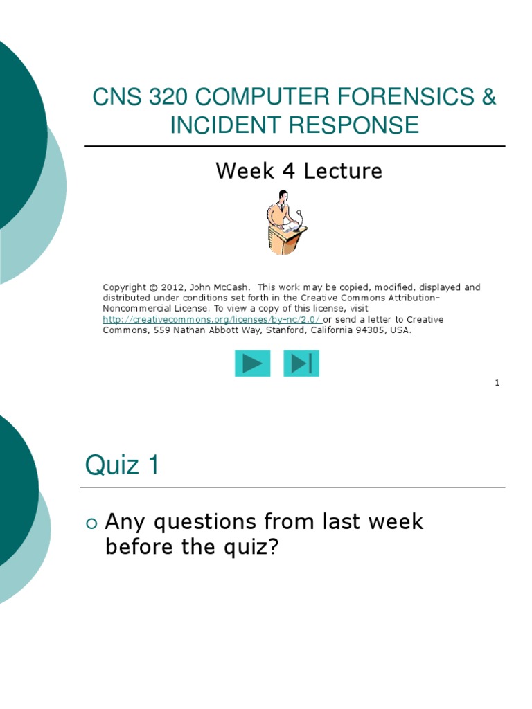 The remaining sections in Chapter 4 of the Carvey book Chapters 3 (Volume Shadow Copies) & 7 (Timeline Analysis) in the Carvey book I didnt assign chapter 6 for this week, but I probably should have. You might want to scan through that briefly