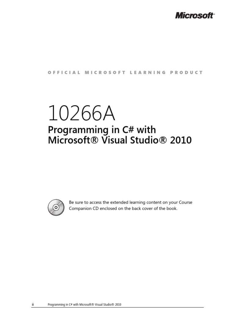 Lesson 1: Introduction to the .NET Framework 4 Lesson 2: Creating Projects Within Visual Studio 2010 Lesson 3: Writing a C# Application Lesson 4: Building a Graphical Application Lesson 5: Documenting an Application Lesson 6: Debugging Applications by Using Visual Studio 2010 Lab: Introducing C# and the .NET Framework 1-4 1-16 1-33 1-44 1-58 1-66 1-78