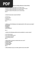 ANSWER: B 71. Advantages of WCF over Web Services? (Windows communication Foundation) A. WCF can create services similar in concept to ASMX B. WCF is implemented on pipeline C. WCF is more secure, reliable D. WCF does not have all Http capabilities E. All The Above ANSWER: E 72. what is its lifetime of a Static variable? A. Can Be accessed even Outside of the Program B. Throughout the execution of a program C. Inside a function D. None Of the Above ANSWER: B 73. What is the root namespace for all types? A. Root B. System C. Parent D. Web ANSWER: B 74. An abstract class is one in which methods are defined but an object of this class cannot be instantiated. This type of a class can only be derived but cannot be instantiated. A. true B. false ANSWER: A 75. What is a Managed Data ? A. Memory allocation/de-allocation is done by user B. Memory allocation/ de-allocetion is done by CLR itself ANSWER: B 76. Viewstate is the mechanism that automatically saves the values of the page's items just after rendering the page. It stores items added to a pages ViewState property as hidden fields on the page. A. True B. false ANSWER: B 77. Application domain is a way in CLR to maintain a boundary between various applications to ensure that they do not interfere in working of any other application.