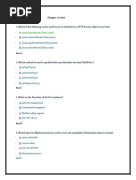 ANSWER: B 18. You are designing a Windows Form that enables you to add a new product to the product catalog of your company. You need to validate the controls as the user enters the data. If incorrect data is entered in the field, you should set the focus back to the control and ask the user to enter the correct data. Which of the following events will you use to validate user input? A. LostFocus B. Validating C. Leave D. Validated ANSWER: B 19. In order for query string values to be available during page processing, you must submit the page using an HTTP GET command. A.True B. False ANSWER: A 20. In order for hidden-field values to be available during page processing, you must submit the page using an HTTP POST command. A. True B. False ANSWER: A 21. A project on which you are working calls for you to store small amount of frequently changing information about a page on the client.For this project, security is not a worry. Which is the best method to use? A. A cookie B. A query string C. A URL D. A hidden form field ANSWER : D 22. What is the last stage of the Web forms lifecycle? A. Event Handling B. Page_Load C. Validate D. Page_Unload ANSWER : D 23. How does ASP.NET store SessionIDs by default? A. In cache B. In cookies C. In a global variable D. In URL strings or in a database