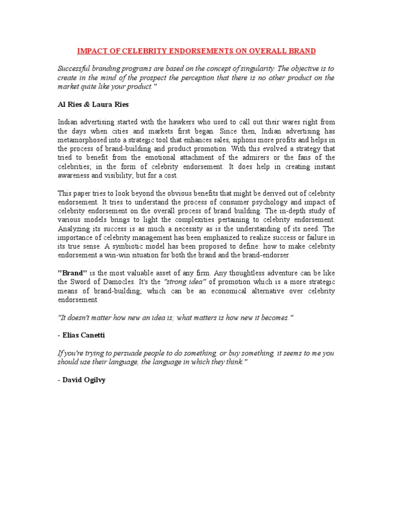 endorsement. It tries to understand the process of consumer psychology and impact of