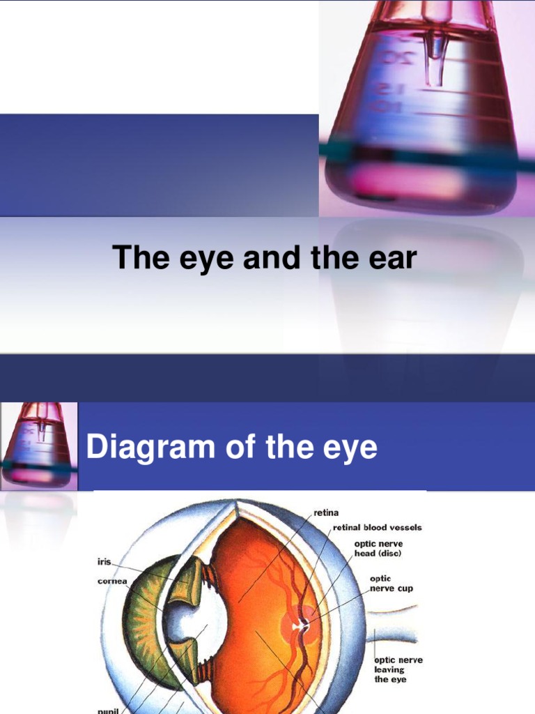 Choroid contains blood vessels that provide the eye with food and oxygen, prevents the reflection of light within the eye Retina contains light-sensitive cells - rods (for black and white vision) and cones (for colour vision) which absorb light and send information to the brain via the optic nerve Fovea the most sensitive part of the retina, only contains cones Blind spot it contains no light-sensitive cells, optic nerve leaves the eye here Optic nerve carries impulses from the retina to the brain