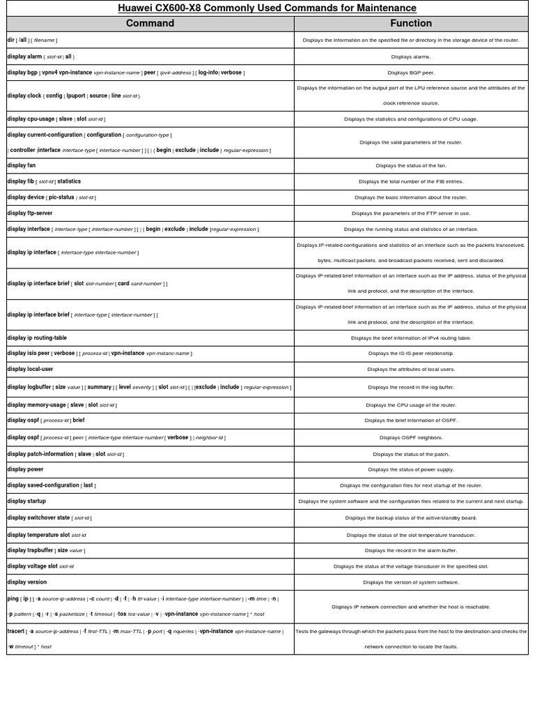 Huawei CX600-X8 Commonly Used Commands for Maintenance Command