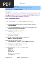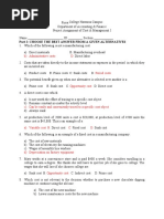 16. Finished Goods inventory account is credited when: a) Goods are purchased on account b) Raw materials are purchased c) Goods are sold d) Underapplied overhead is closed 17. Nonmanufacturing costs are: a) Included in manufacturing overhead b) Not part of the product cost c) Deducted from Work in Process d) Added directly to cost of goods sold 18. The predetermined overhead rate is computed: a) Using a weighted-average method. b) Using actual activity as an allocation base. c) At the beginning of the year, using estimates d) After all actual costs have been incurred 19. Total manufacturing costs for the period consist of: a) Direct materials, direct labor and manufacturing overhead applied b) Manufacturing overhead applied and selling expenses c) All expenses incurred, including selling and administrative d) Cost of goods sold plus ending Finished Goods inventory 20. Cost of Goods Sold is derived from: a) Job-cost sheets b) Raw Materials inventory account c) Finished Goods inventory account d) Estimates for the expected level of sales