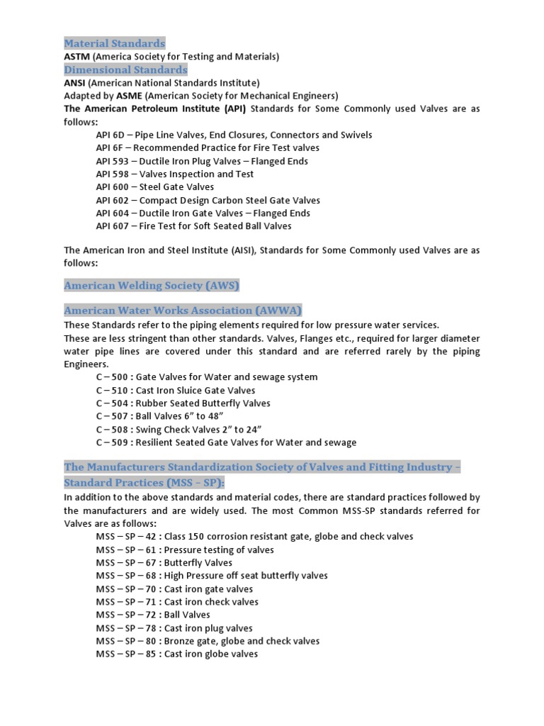 the manufacturers and are widely used. The most Common MSS-SP standards referred for