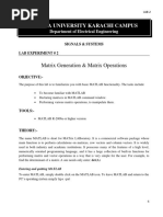 Basic Simulation Lab 1. BASIC OPERATIONS ON MATRICES AIM: To understand MATLAB basic features and built in functions available in MATLAB. EQUIPMENT AND SOFTWARE: Personal Computer loaded with MATLAB 7.1 OPERATING SYSTEM: Windows XP THEORY: MATLAB, which stands for MATrix LABoratory, is a state-of-the-art mathematical software package, which is used extensively in both academia and industry. It is an interactive program for numerical computation and data visualization, which along with its programming capabilities provides a very useful tool for almost all areas of science and engineering. Unlike other mathematical packages, such as MAPLE or MATHEMATICA, MATLAB cannot perform symbolic manipulations without the use of additional Toolboxes. It remains however, one of the leading software packages for numerical computation. As you might guess from its name, MATLAB deals mainly with matrices. A scalar is a 1-by-1 matrix and a row vector of length say 5, is a 1-by-5 matrix.. One of the many advantages of MATLAB is the natural notation used. It looks a lot like the notation that you encounter in a linear algebra. This makes the use of the program especially easy and it is what makes MATLAB a natural choice for numerical computations. The purpose of this experiment is to familiarize MATLAB, by introducing the basic features and commands of the program. MATLAB is case-sensitive, which means that a + B is not the same as a + b. The MATLAB prompt () in command window is where the commands are entered. Matrices : 1. row matrix: Elements in a row are separated either by using white spaces or commas eg: a=[1 2 4 5] 2. column matrix: Elements which differ by a column are seperated by enter or semicolumn eg: b=[1; 2; 3] Looking into matrix: a(row,column) allows to look the particular element in the matrix a Vectors: d= [0:7] d is a vector or row matrix with first element as 0 and last element as 7 and increment is by default 1. The default increment can be changed (to 0.1) by using increment field in between as e= [0:0.1:7]. d(1:2) allows to look into vector with increment 1 e(1:2:4) look with increment
