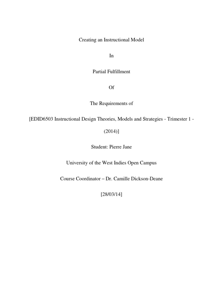 Creating an Instructional Model In Partial Fulfillment Of The Requirements of [EDID6503 Instructional Design Theories, Models and Strategies - Trimester