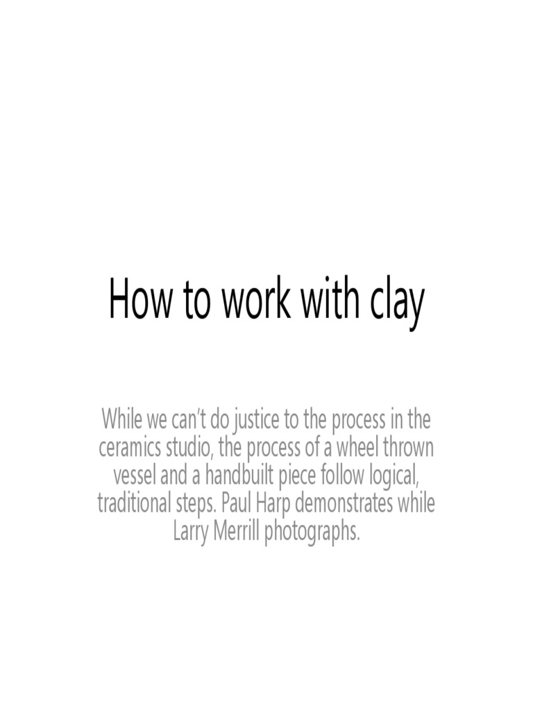 While we cant do justice to the process in the ceramics studio, the process of a wheel thrown vessel and a handbuilt piece follow logical, traditional steps. Paul Harp demonstrates while Larry Merrill photographs.