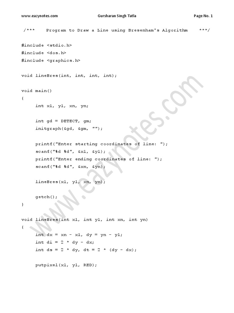 /*** Program to Draw a Line using Bresenham's Algorithm ***/