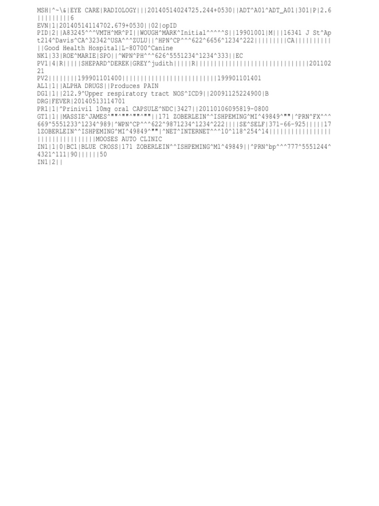 MSH|^~\&|EYE CARE|RADIOLOGY|||20140514024725.244+0530||ADT^A01^ADT_A01|301|P|2.
