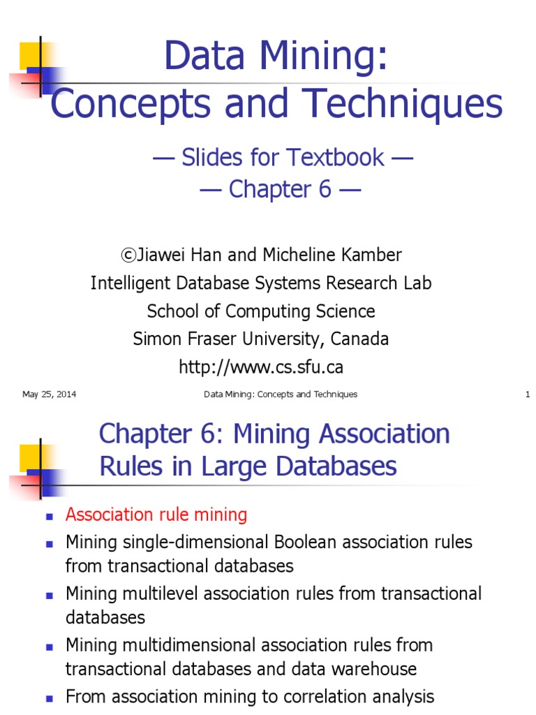Data Mining: Concepts and Techniques: - Slides For Textbook - Chapter 6