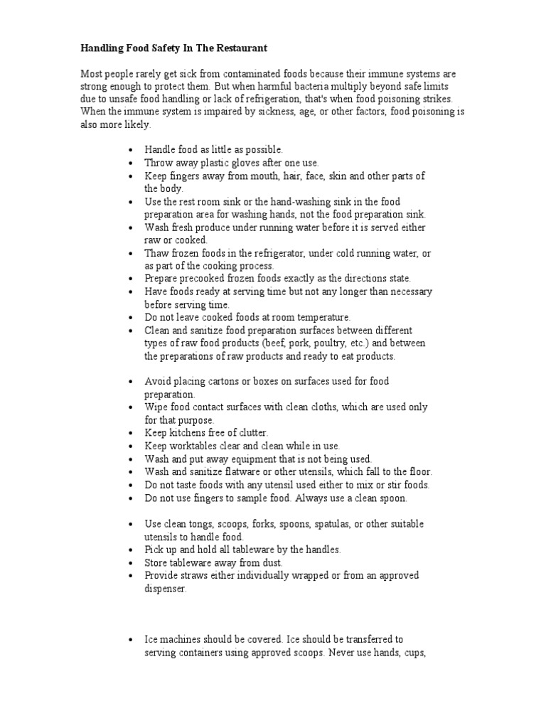 techni+ues. :estaurant employees are re+uired to attend the food"safety training program.