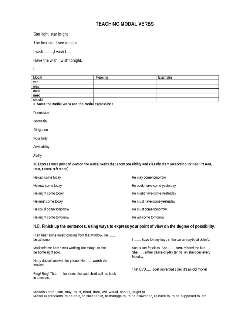III" Exress #o$r o!nt o% v!e& on the modal verbs that sho& oss!b!l!t# and 'lass!%# them (a''ord!n) to the!r *resent+