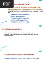 Modals verbs : can, may, must, need, dare, will, would, should, ought to