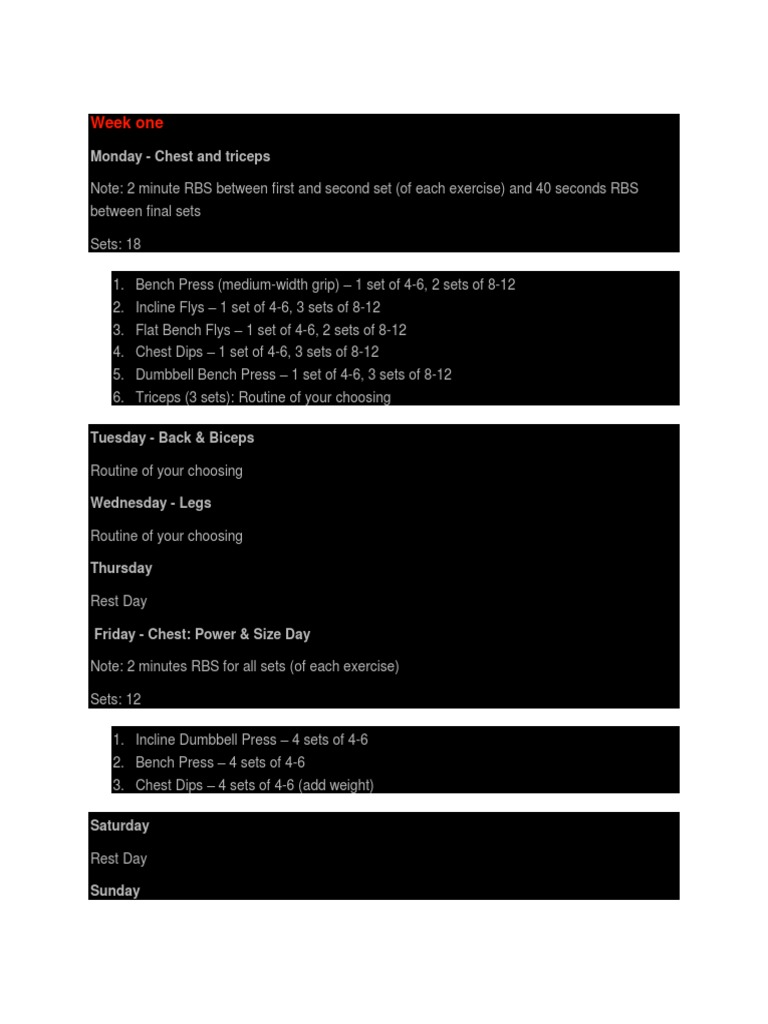 Note: 2 minute RBS between first and second set (of each exercise) and 40 seconds RBS
