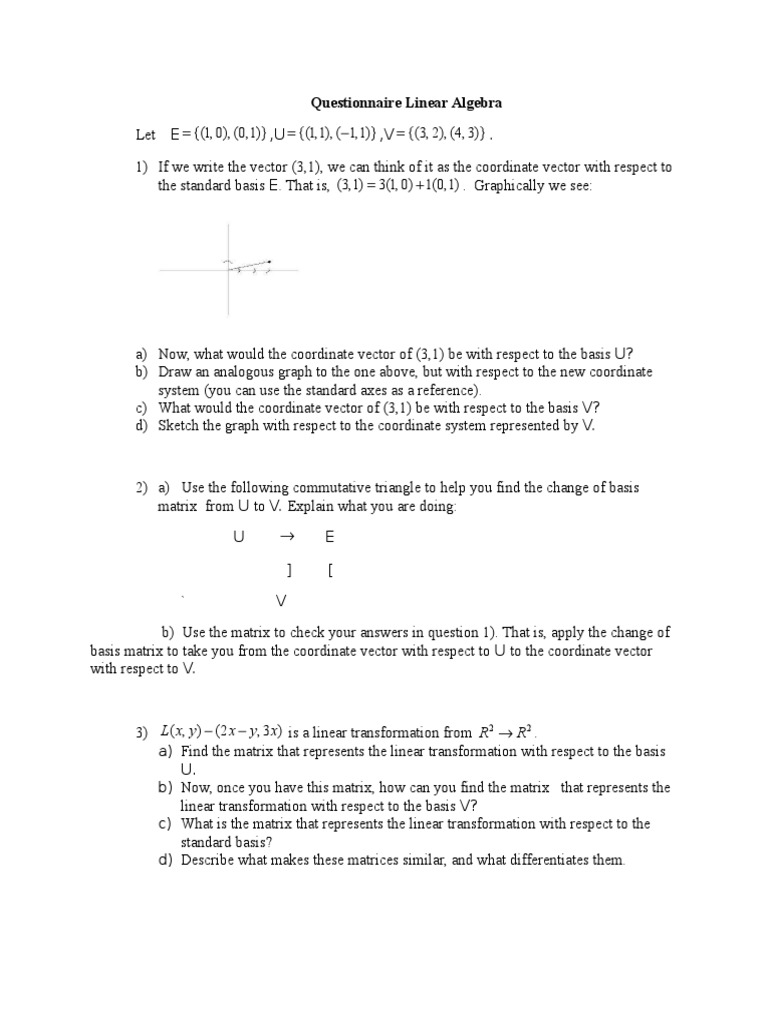 a) %ow, what wo&"d the coordinate vector of (3,1) be with respect to the basis U?