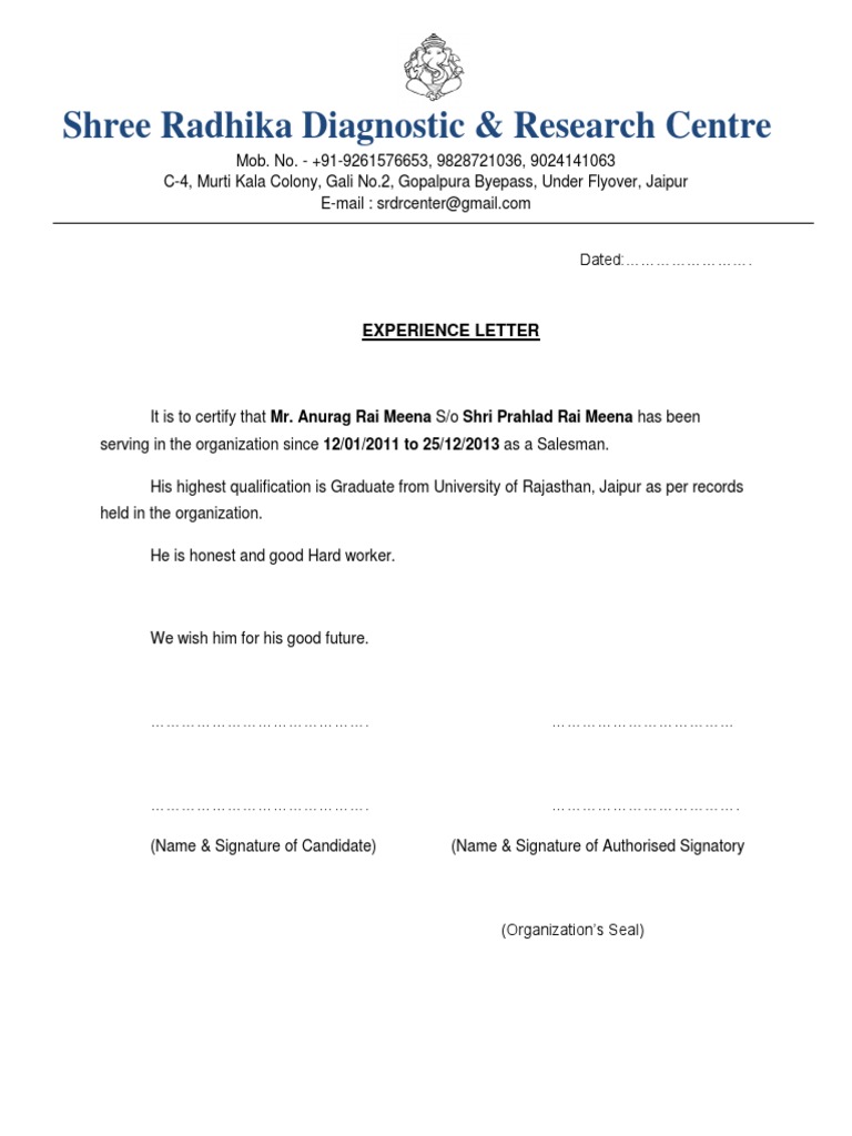 It is to certify that Mr. Anurag Rai Meena S/o Shri Prahlad Rai Meena has been