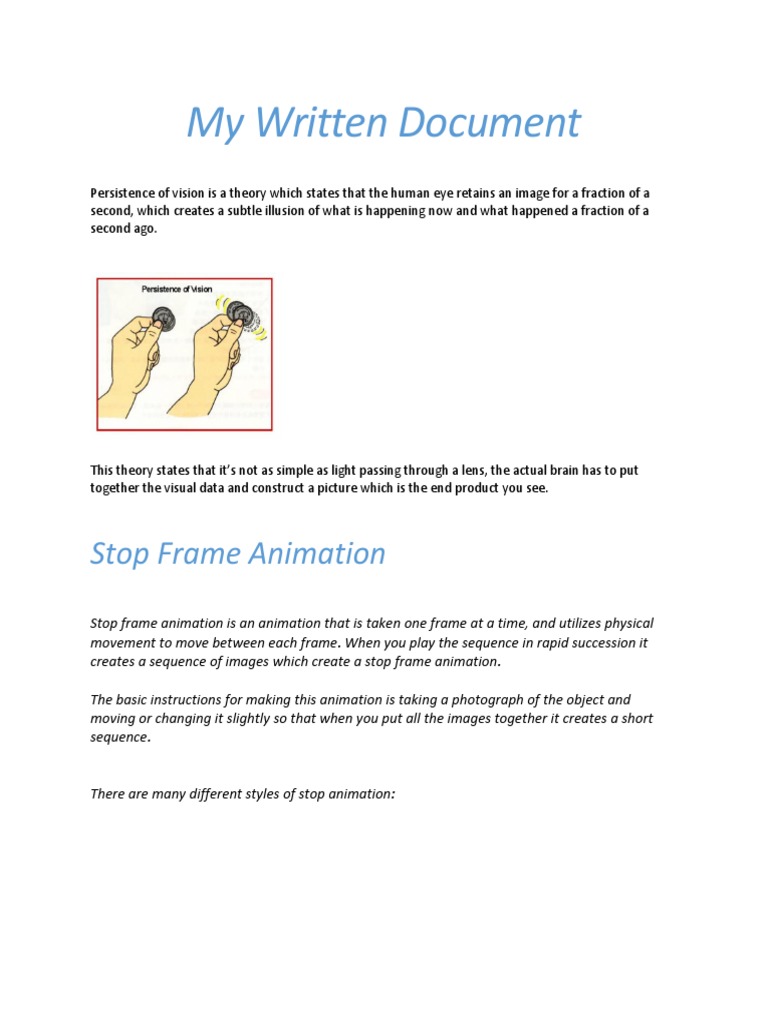Persistence of vision is a theory which states that the human eye retains an image for a fraction of a