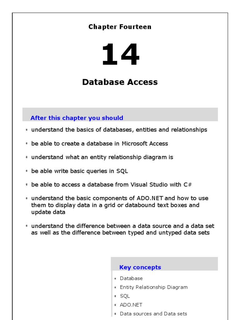 the main concern of this chapter: Teaching you how to write applications in C# that connects