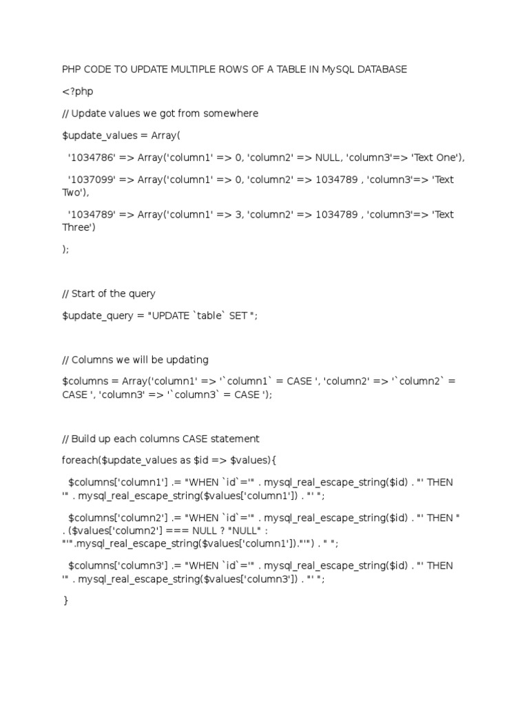 PHP CODE TO UPDATE MULTIPLE ROWS OF A TABLE IN MySQL DATABASE