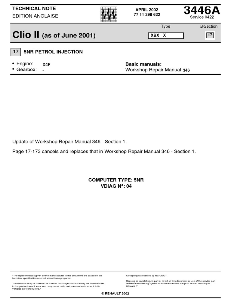 Update of Workshop Repair Manual 346 - Section 1.