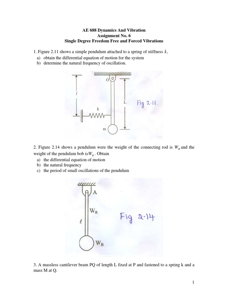 1. Figure 2.11 shows a simple pendulum attached to a spring of stiffness k ,