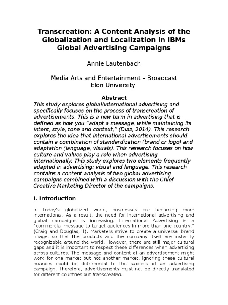 advertised, (Baleman, 2010). It is key to be familiar with the creative