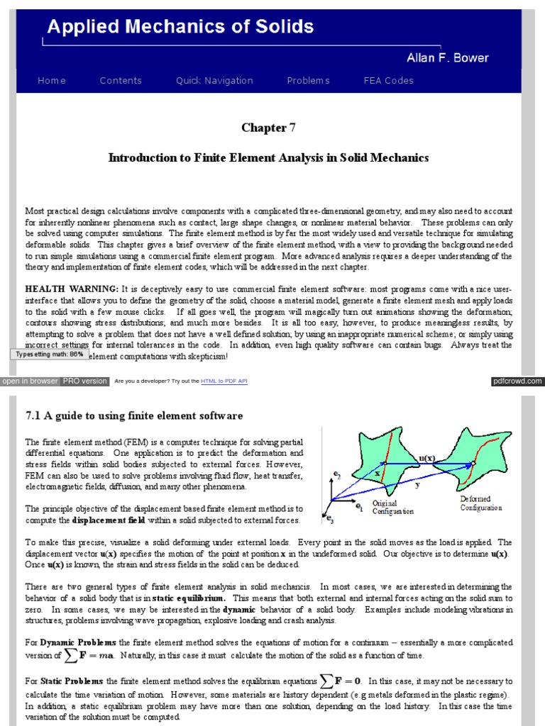 to run simple simulations using a commercial finite element program. More advanced analysis requires a deeper understanding of the