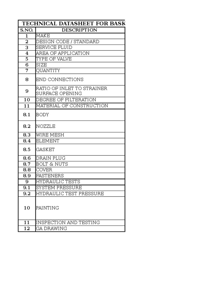 TECHNICAL DATASHEET FOR BASKET STRAINER