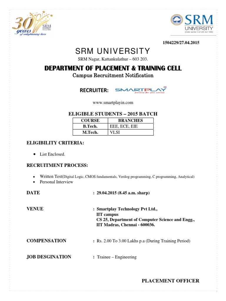 DEPARTMENT OF PLACEMENT & TRAINING CELL