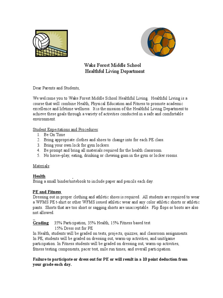We welcome you to Wake Forest Middle School Healthful Living. Healthful Living is a