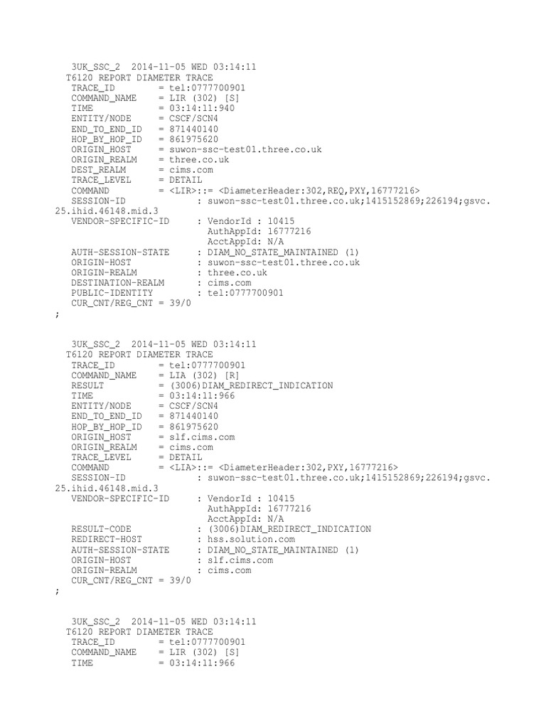 T6120 REPORT DIAMETER TRACE