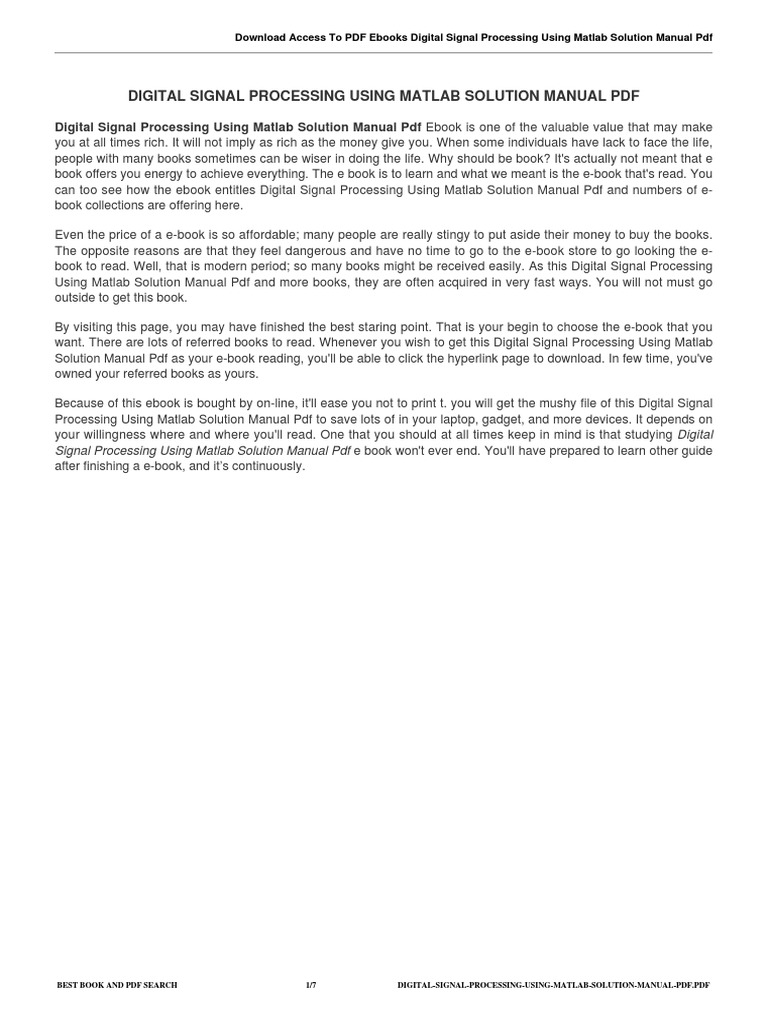 Digital Signal Processing Using Matlab Solution Manual Pdf Ebook is one of the valuable value that may make